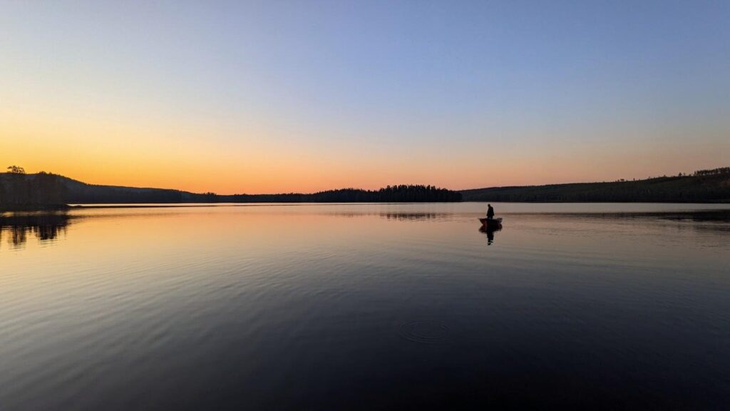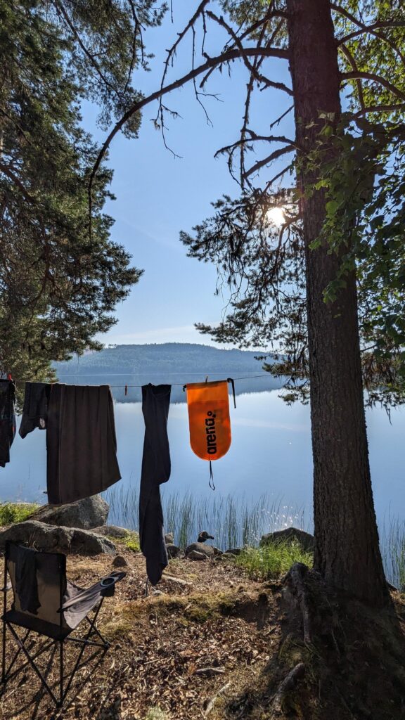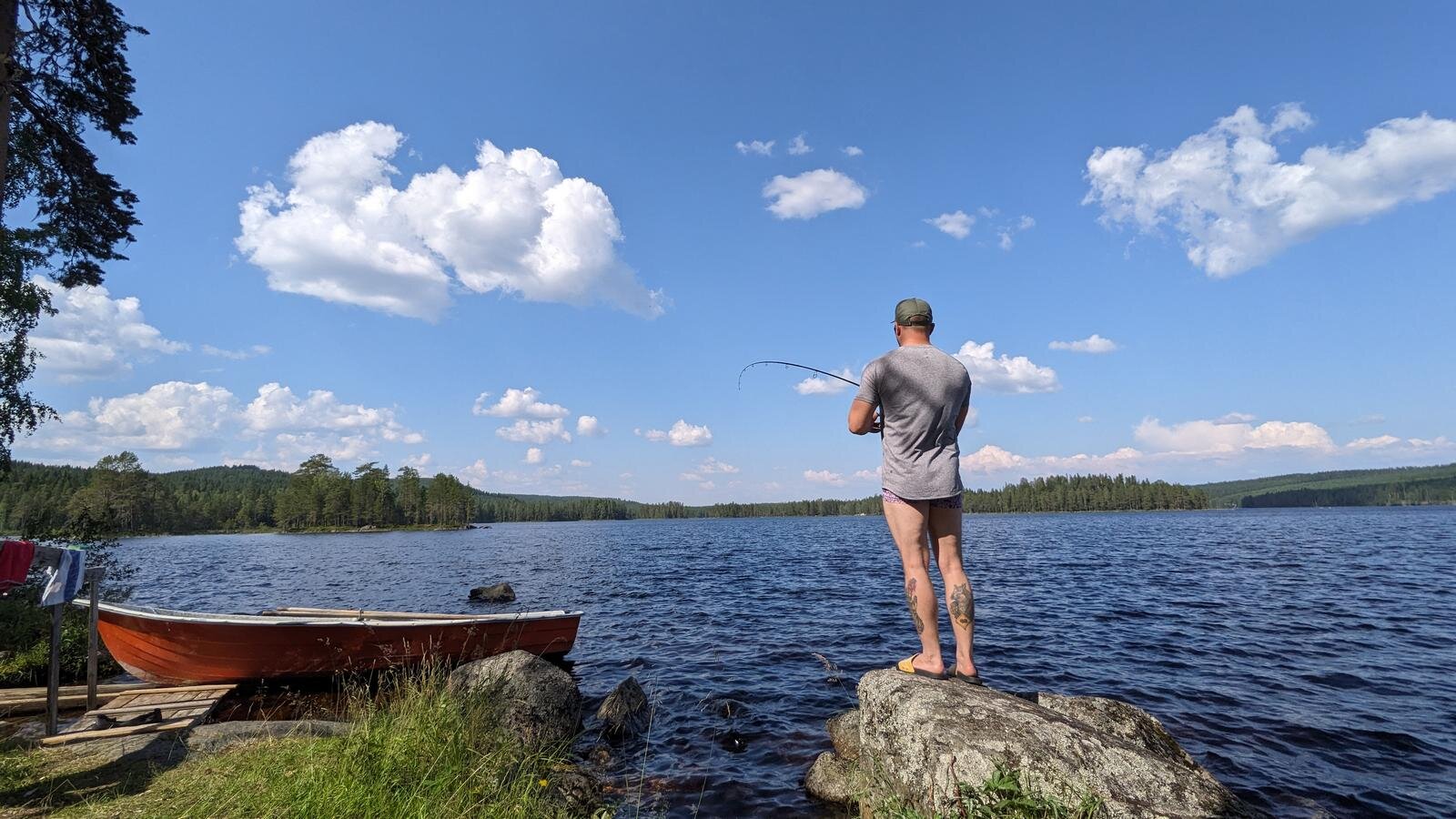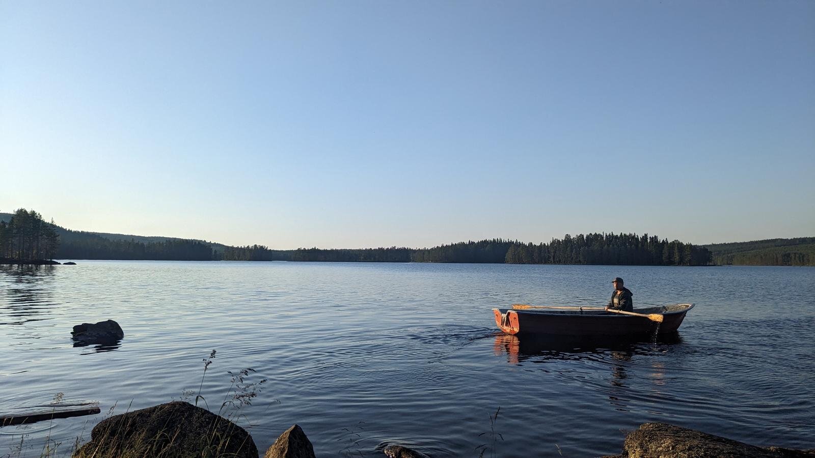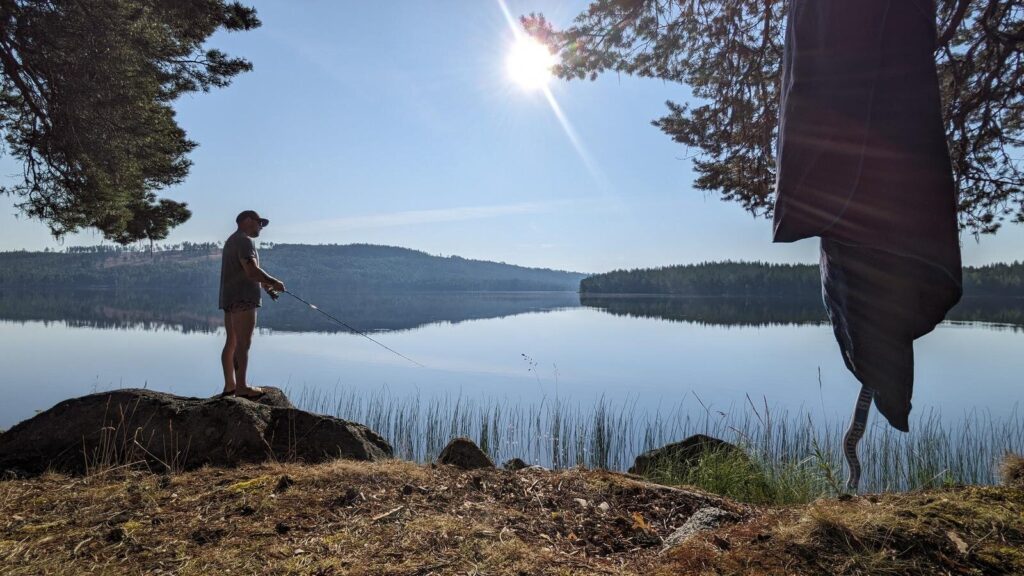 Und das Sahnehäubchen: Das repetitive Auswerfen und wieder Einholen der Angel. Vom Ufer aus, aus einem Busch heraus, vom Boot aus oder vom Kajak, vom Ufer der unzähligen kleinen Inseln oder einfach von einem Stein, den man aus dem Boot betreten hat und der einfach mitten aus dem Wasser herausragt. Ja und dann sind da die unzähligen Fischerlebnisse: Barsche und Hechte. Viele Barsche und Hechte.