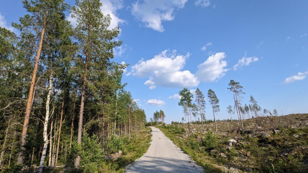 Die Straßen werden mit einem 6-achsigen Harvester in den Wald geschlitzt, die den zu 90% aus Urgestein bestehenden Boden mit aller Gewalt aufsprengen. Anschließend werden komplette Kies- und Schotterproduktionstraßen mittels LKW an Ort und Stelle verfrachtet, aufgebaut und produzieren aus dem Material, das in Hülle und Fülle vorhanden ist, die Steinschicht für die Schneise, die man anschließend als Straße bezeichnet.