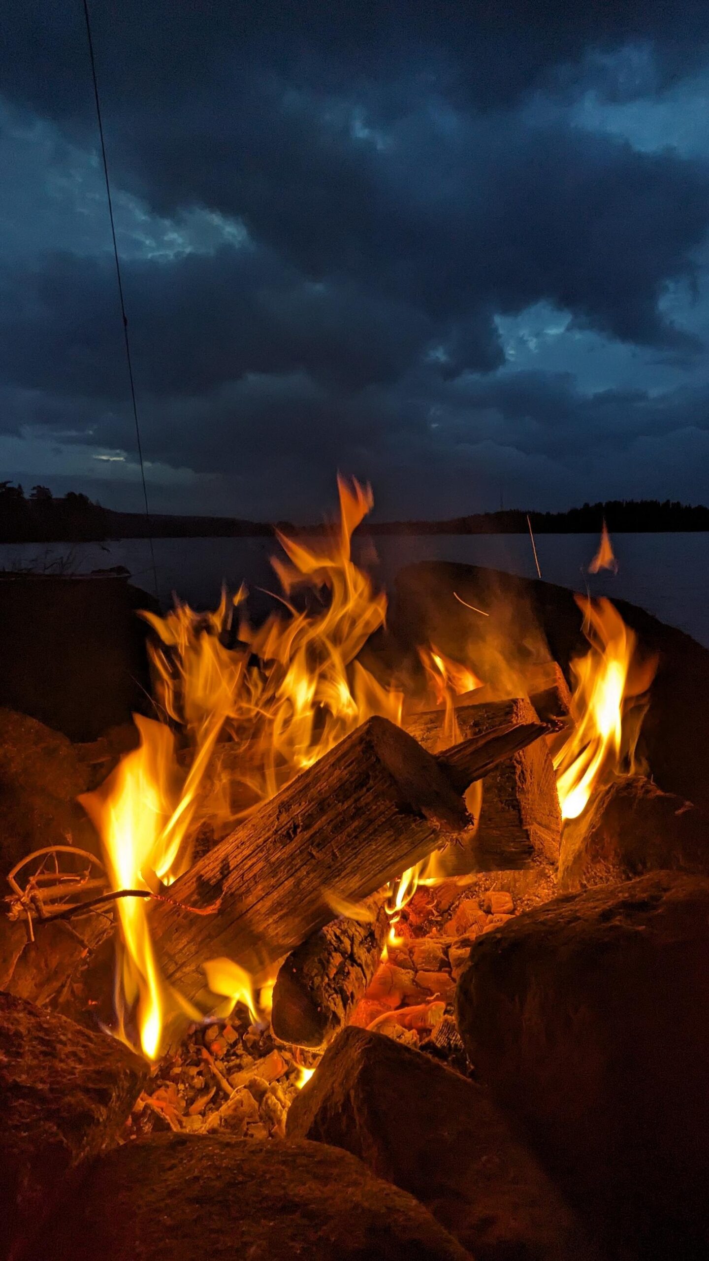 Die Feuerstelle direkt am Wasser nutzen wir fast durchgehend. Der Geruch des Feuers versetzt uns unbewusst in einen entspannten Urzustand. Es gibt kaum etwas Schöneres als morgens direkt nach dem Aufstehen sich in die Sonne zu setzen, einen Kaffee zu trinken, das Feuer zu zünden und sich vom Qualm benetzen zu lassen. Das Knistern wirkt meditativ und der Geruch erweckt ein Gefühl von Geborgenheit.